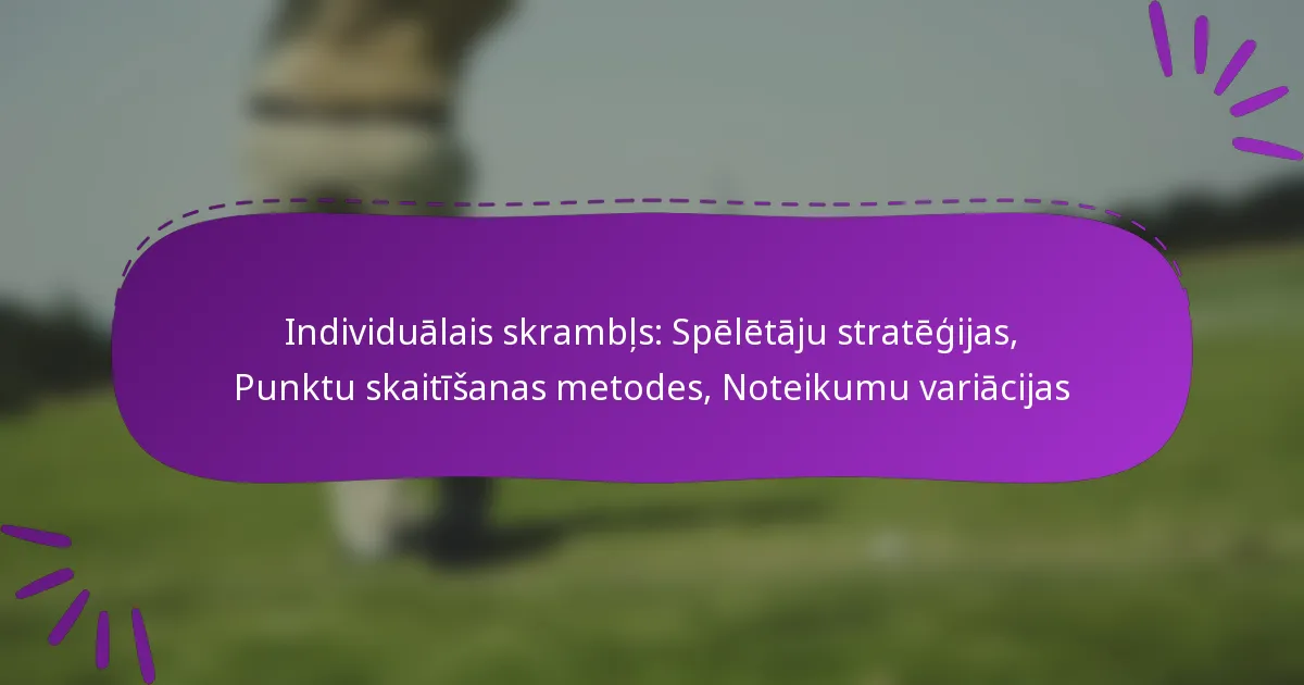 Individuālais Scramble ir dinamiska forma, kas mudina spēlētājus izstrādāt efektīvas stratēģijas, pielāgojoties viņu prasmju līmeņiem un laukuma izkārtojumam. Izpratne par punktu skaitīšanas metodēm ir būtiska, jo tās tieši ietekmē sniegumu un reitingus. Turklāt spēlētājiem jāiepazīstas ar dažādām noteikumu variācijām, kas var ietekmēt spēles gaitu, nodrošinot godīgu un patīkamu pieredzi visiem dalībniekiem.
